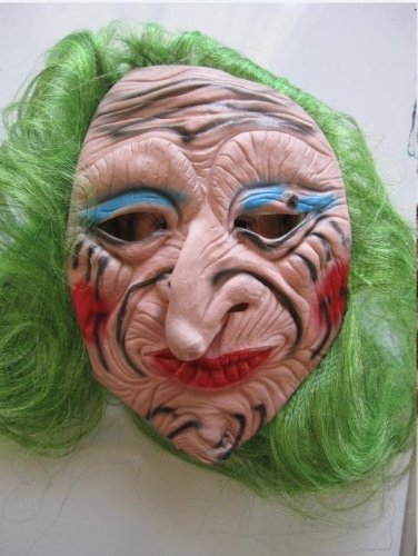 NEW Halloween Scary Witch Mask----! Bright Green Hair Red Lip Blue Eyebrow! Super Deal! Review
